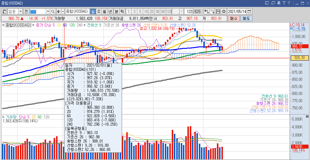 반등 성공? 코스닥은 구름위로 살짝 올라와주었는데 아직 안심하기는 이른 위치로 보인다. 그래도 중요한 지지라인을 지켜준 것 같다.