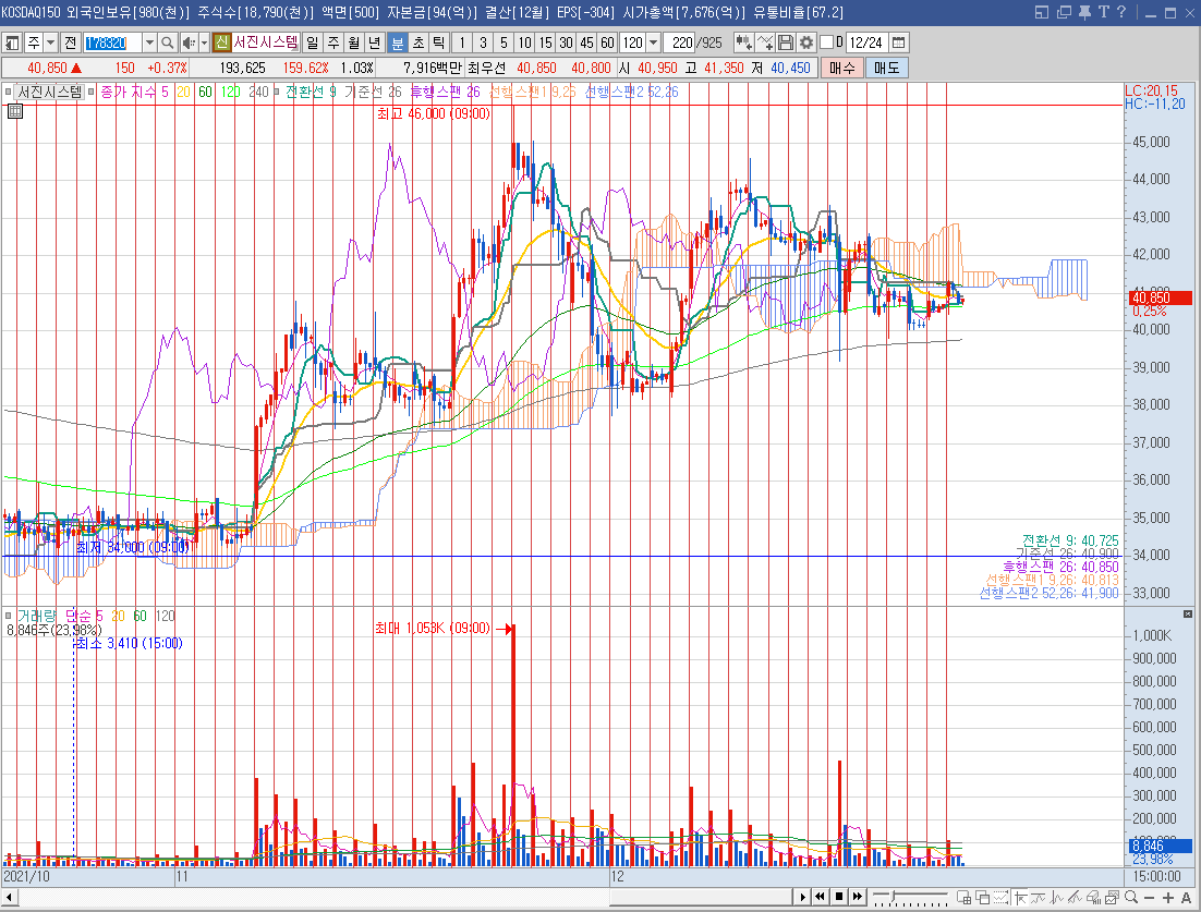 서진시스템은 재미없는 흐름을 계속 이어가고 있다. 삼각수렴? 저기서 이제 위로? 아래로?