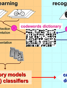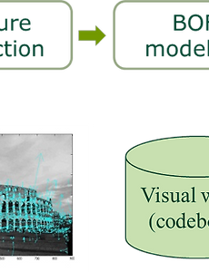 Feature2 Feature Feature에 대해서 간단하게라도 정리해보려고 적는다. Invariant local feature - geometric invariance : translation, rotation, scale - photometric invariance : brightness, exposure Advantage of local feature - Locality : feature가 local(뽑힌 위치에서 계속 뽑힘)하기 때문에 occlusion과 cluster에 강인함 - Distinctiveness : 물체의 큰 Database에서 구별을 할 수 있다. - Quantity : 1장의 image에 100~ 1000개 이상의 feature가 있다. - Efficiency : real time - Generality :.. 2012. 3. 21. Bag-Of-Feature 기반 영상 검색 Bag of Feature는 정보검색(information retrieval)에서 쓰이는 Bag of Word에서 부터 유래 되었습니다. Bag of Word는 텍스트검색 시스템에서 쓰이는건데, 쉽게 말해 텍스트 내 단어의 출현빈도에 의해서 텍스트를 근사표현 해보자는 겁니다. 즉, 예를들어 어떤 텍스트내에 "아프가니스탄", "조지부시" 단어의 출현빈도가 높았다고 하면, 그 텍스트는 911사건과 관련이 깊을지도 모른다고 유추 가능 하다는 것 입니다. 이 개념을 그대로 Bag of Features에 사용을 합니다. BoF에서는 화상내의 극소 특징벡터의 출현빈도로 화상을 근사표현을 하는 겁니다. 또한, 텍스트 검색 서비스에서는 단어를 Visual Word라고 부르는데, BoF도 마찬가지로 Visual Word.. 2012. 3. 20. 이전 1 다음